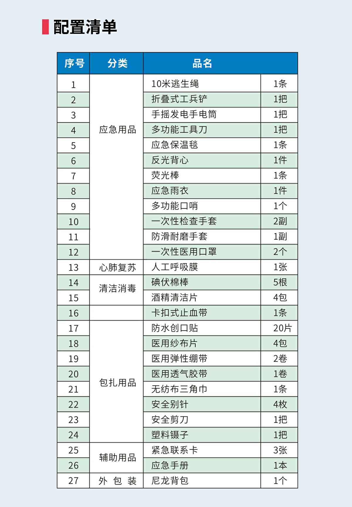 石家庄佑平家庭视频监控有限公司防灾应急包,适合突发灾害事故时恶劣环境下使用,配置全面、科学,满足从日常保健到灾难自救逃生的全面需求。